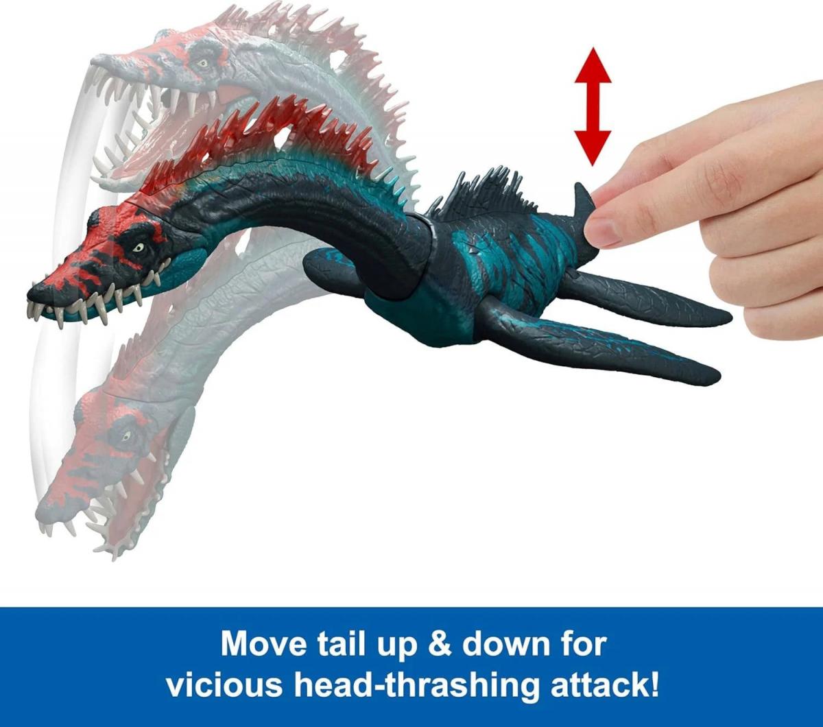 This Gigantic Tracker Styxosaurus figure inspired by the Jurassic World franchise has two dramatic attack motions! Use the tail to control the up and down head attack with chomp; move it side to side to activate the fins into swimming action.This figure of the large aquatic dinosaur species is 13.9 inches long with authentic sculpting, deco and texture for battle play or fierce posing.Scan the hidden Tracking Code in the free Jurassic World Play App with a compatible smart device (Android or iOS, not included) to unlock a digital version of the dinosaur and access to fiercely fun games!Makes a great gift for dinosaur fans ages 4 years and up. Colours and decorations may vary.Ages 4 + 1 item left #zip-prod-widget > iframe { position: relative !important;right: 20px !important;} Qty